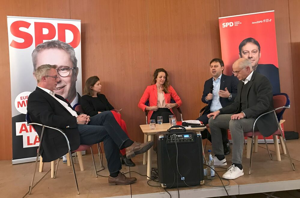 Auf die Frage, wie die SPD trotz der nicht gerade positiven Umfragen den Rückstand aufholen wollten, nannte Jens Zimmermann andere Umfrageergebnisse. So würden 38 der Wähler sagen, dass die SPD für sie wählbar ist. Eine hohe Zahl, die zum Kampf um Stimmen ermutigt mit dem Hinweis, dass die Prognosen vor drei Jahren am Anfang ähnlich waren. Josefine Koebe steuerte die gerade von ihr recherchierte neuste Nachricht hinzu: „In einer aktuellen Umfrage haben wir schon ein Prozent hinzugewonnen.“